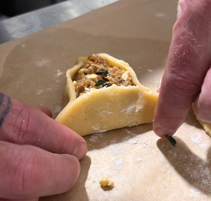 לאחר חצי שעה נוסיף כף סוכר וקורט של פלפל שחור, נערבב במשך 5 דקות ונצנן. נוסיף לבצל לאחר שהצטנן 60 גרם גורגונזולה ונטעם…