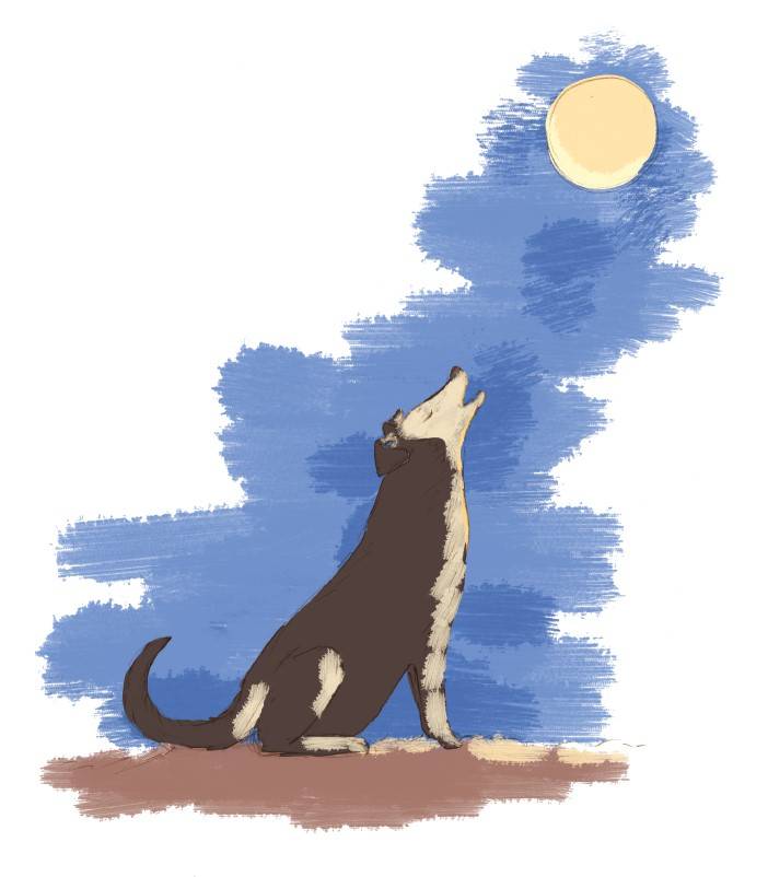 אבל מאוחר בלילה, כשכבר אין בחוץ עם מי להיכנס לצרות, אני משחרר אותו, והוא טס אל החשיכה תוך הרף עין, נעלם לקול יללת התנים. אני לא יודע מה הוא עושה בלילות. אני כן יודע שמאז שעברנו לכאן, אין יותר פריצות בבתי הרחוב (מכה חמורה ברוב המושבים בישראל). בבוקר אני יוצא להאכיל את החתולים שהתקרצצו עלי ונותן שריקה אחת קצרה. לא חשוב כמה הוא רחוק – שריקה אחת, זה כל מה שצריך כדי שיגיע בריצה עולצת, מוכן ומזומן להיקשר לרצועה לעוד יום, לאכול דוגלי ולהיות חד–כלב. אבל הברק הצהוב בעיניו מעיד שעד לפני רגע קט הוא היה משהו אחר לגמרי.