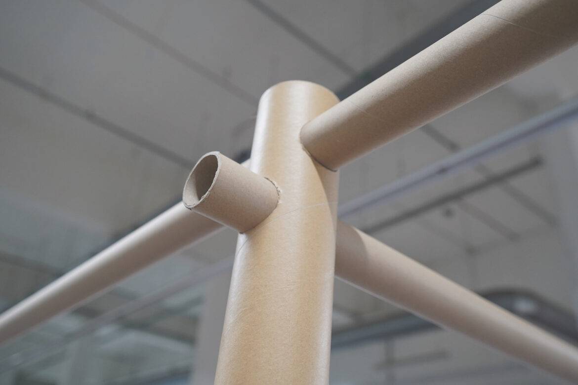 שיגארו באן, אדריכל יפני המתמחה בעיצוב פרוייקטים לאנשים שנפגעו מאסונות, הגיע לכאן בתחילת החודש. הוא חילק את המתחם העצום לקוביות אינטימיות מינימליסטיות באמצעות חומרי גלם מתכלים – המחיצות עשויות גלילי קרטון ומושחלות זו בזו. כמה מהן כבר נשברו והודבקו על ידי נייר דבק אפור ונטול זוהר עיצובי. בתוך כל יחידת דיור קטנה כזו ממוקמות 4 מיטות שדה ועליהן כריות איקאה חשופות. וילון לבן עשוי אלבד מעניק את האינטימיות המדומה.