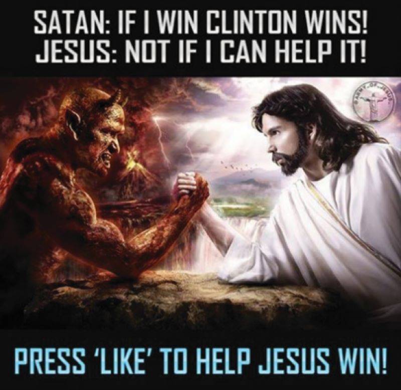 חוות הטרולים ההיא, מסתבר, הפיקה שורה של ממים וקריקטורות שהתייחסו לנושאים שונים ומגוונים, החל מהזכות להחזקת נשק ועד אזהרות מפני אוננות יתר. חלקם הניכר היו חסרי פשר פוליטי מובהק וכמעט כולם זכו לחשיפה זניחה. אחת הקריקטורות, למשל, שפנתה לכאורה לקהילת הלהט"בק, הציגה את ברני סנדרס עומד לפני הבית הלבן ומותח גוף חסון ושרירי בתנוחה נועזת. קריקטורה אחרת הראתה קרב הורדת ידיים בין ישוע לבין השטן, שבו הראשון מייצג את טראמפ והאחרון את הילארי. התקשורת הרבתה להזכיר את התמונה הזו כדוגמה ליעילות המתוחכמת של המניפולציה הרוסית, אף על פי ששבמקרה הזה היא זכתה בפייסבוק לסך כולל של כשבעים לייקים.