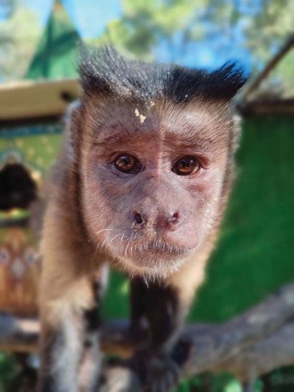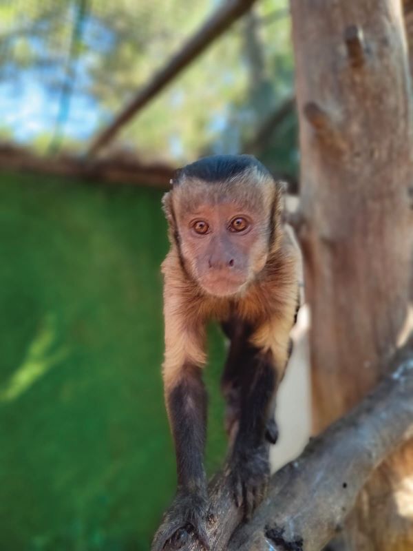 אני לא יודעת אם אתם יודעים, אבל קופי קפוצ’ין נחשבים חכמים מאוד. יש שמגדירים אותם אף כחכמים ביותר מקופי העולם החדש (קופים פרמטיים שיש להם זנב המשמש להם כזרוע נוספת. בקבוצה זו נכללים גם קופי עכביש, שאגן, טמרין, מרמוסט, קופי סנאי וסאקיים) – הם משתמשים בכלים, מייבשים אגוזי קוקוס ומשתמשים בהם כמזווה למזון, התקשורת שלהם מורכבת ועשירה, הם מייצרים תכשירי הגנה טבעיים: הם מרסקים ומועכים מרבי רגליים ומורחים את “מיץ מרבה הרגליים” על גופם כדי להרחיק יתושים וחרקים עוקצים אחרים. הם שובבים וסקרנים. היכולות האקרובטיות שלהם מרשימות, גם בהשוואה לקופים אחרים. והנה הם עומדים מפוחדים בפינה, ואני מברכת אותם לשלום.
