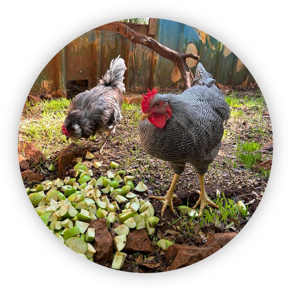 בשאר הכלובים יש עוד הרבה מאד בעלי כנף למיניהם. תרנגולות ותרנגולים מיוחדים, יאללה תסתדרו במרחב הפתוח שלנו, אני מחליטה עבורם, והם משוחררים ל-35 הדונם של יער הקופים.