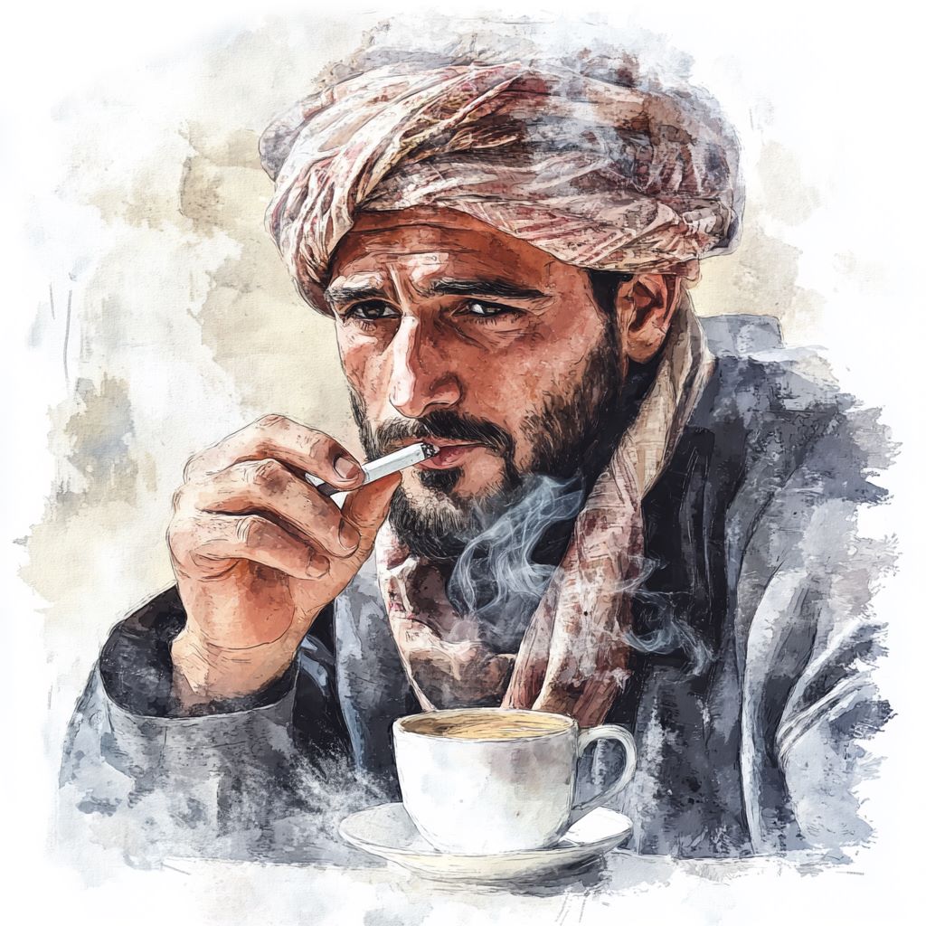 הקפה מוגש בצמצום בכוסות קטנות ללא ידיות. המארח מוזג לעצמו כוס ראשונה ולוגם ממנה כדי להראות לאורחים, שאין בו שום דבר מזיק, ואולי החשוב ביותר – לבדוק את הטמפרטורה שלו. קפה חייב להיות חם. המוניטין של המארח תלוי בקפה חם. אם אורח מעיר כי הקפה קר, הדבר נחשב לעלבון. הכוס השניה מיועדת לבנו הבכור של המארח, שבדרך כלל יושב לימינו, והשלישית לאורח המגיע לביקור לא חברתי, היושב סמוך לו. הוא מגיש לאורח את הכוס והלה אינו לוגם ממנה אלא מניח אותה בין רגליו המשוכלות – אות לכך שיש לו עניין לדון בו עם המארח.